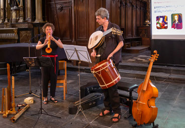 Aline Hopchet: blokfluiten, historische dubbelrieten, zang en uitleg